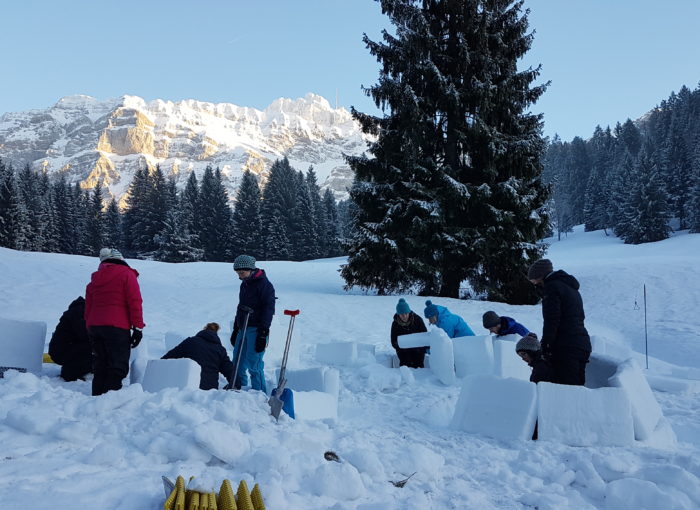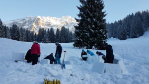 Die Lehrgangsteilnehmerinnen der Waldkinder St. Gallen kamen am 13. Januar 2018 in den Genuss einer Einführung in die Geheimnisse des Iglubauens. Aufgrund des dichten Wochenendprogrammes konnten wir nur zwei kleine Demoiglus erstellen, diese erstellten wir dafür in nicht einmal zwei Stunden.
